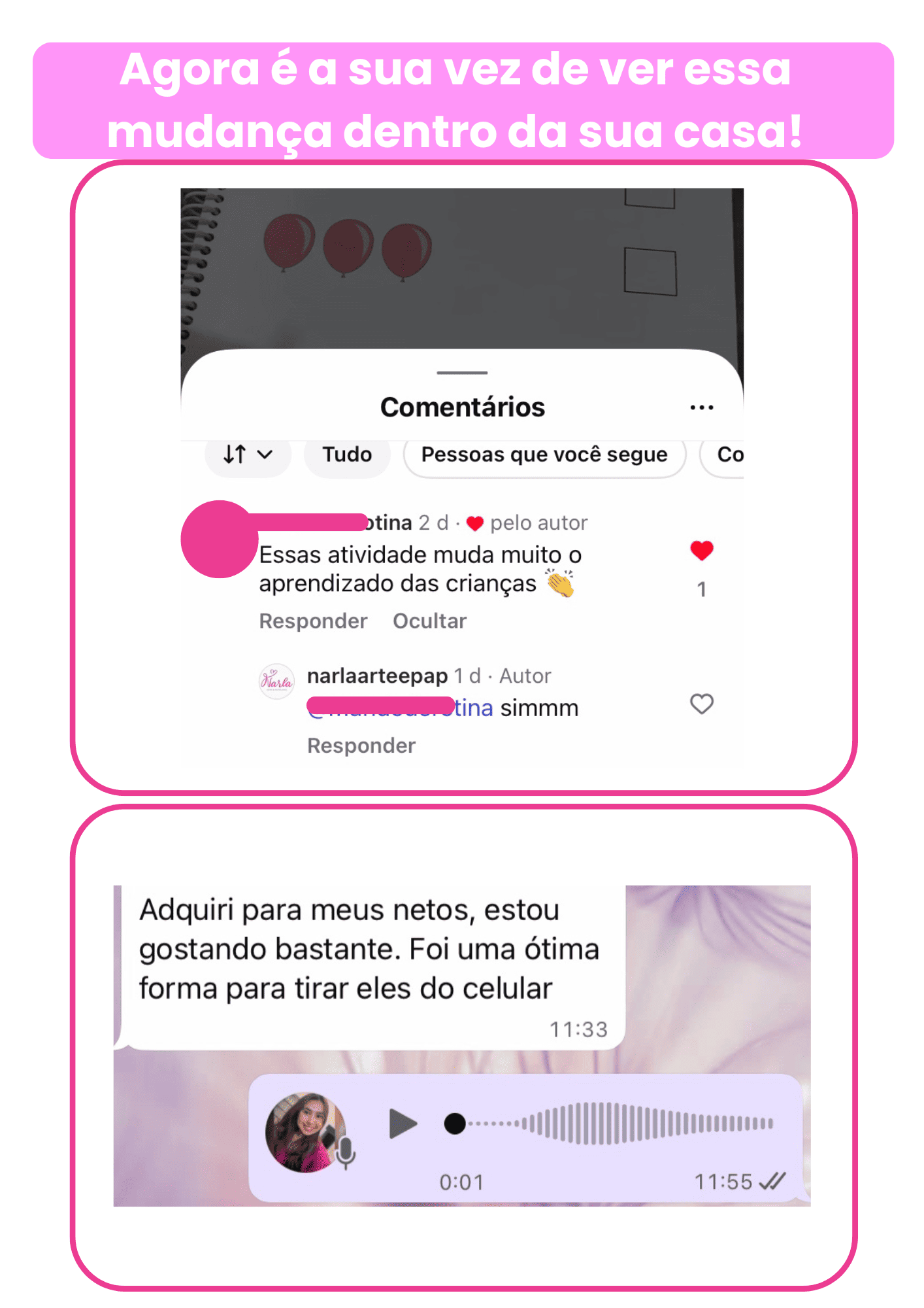 Você esta no lugar certo, essas atividades são justamente para reduzir o tempo das crianças no celular, com atividades ilustrativas que garantira aprendizado e diversão alem de aumentar o vinculo de mãe e filho.