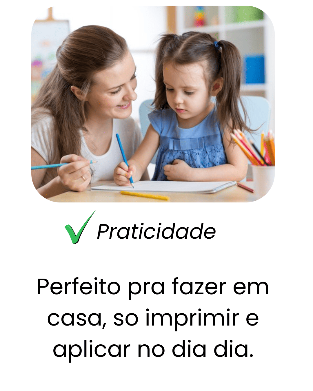 Você recebe um material completo com mais de 400 atividades prontas para imprimir e aplicar com seu filho.